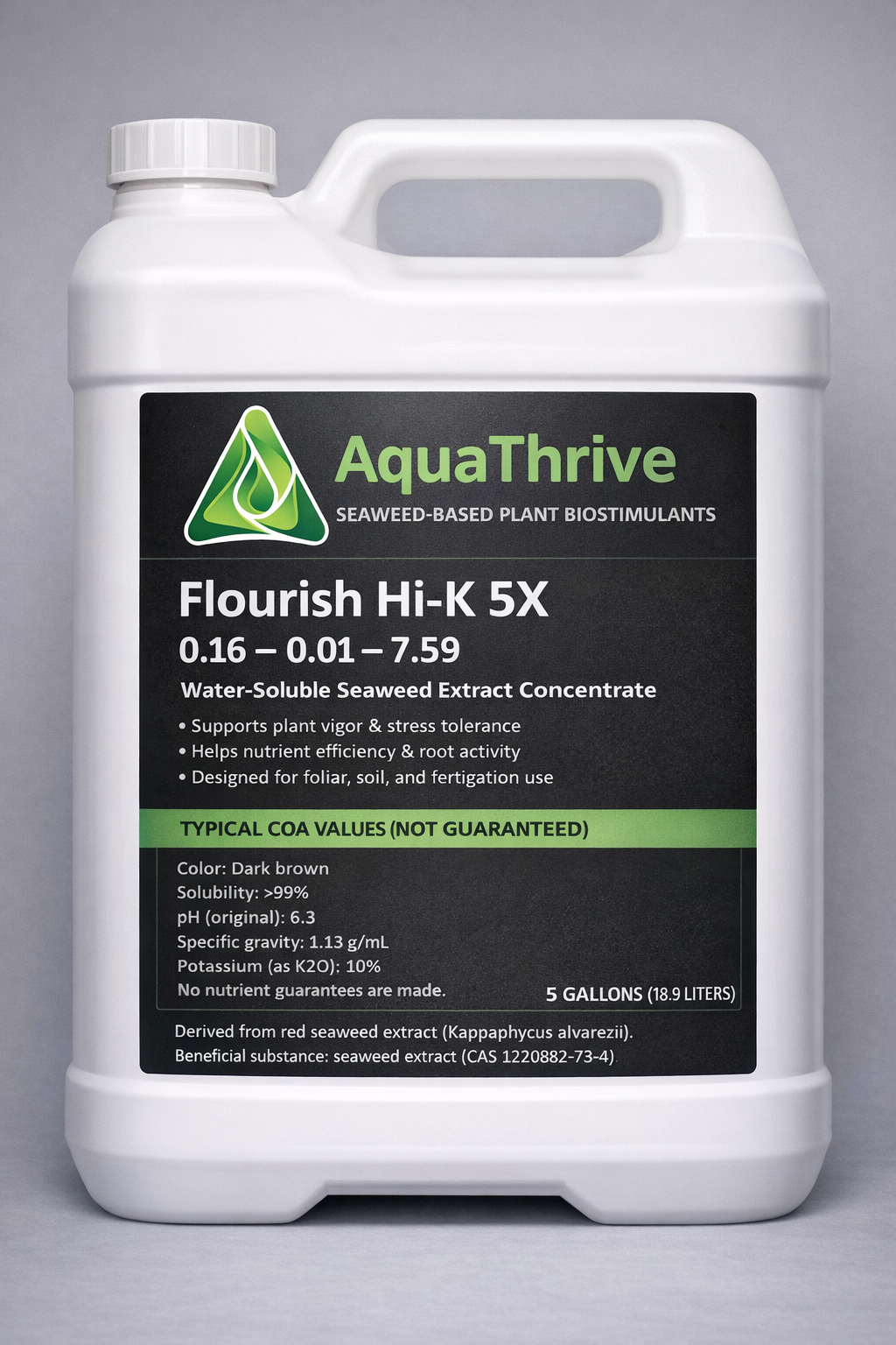 An ultra-concentrated, fully soluble powder made from the extracts of red seaweed (rhodophytes), rich in potassium, micronutrients, and plant growth hormones.